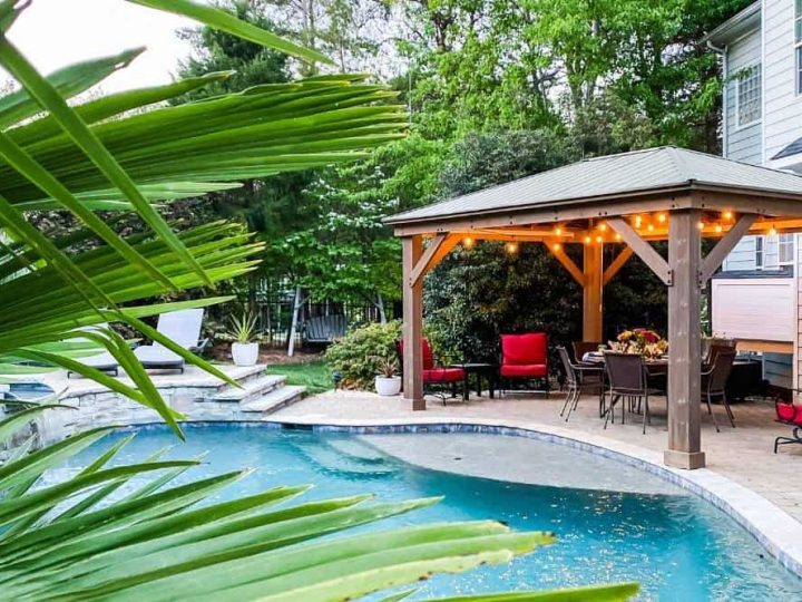Check out these easy tips for hanging outdoor string lights from your pergola for a beautiful ambiance in your backyard all year long.