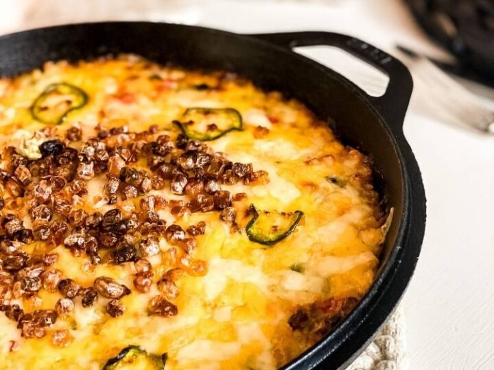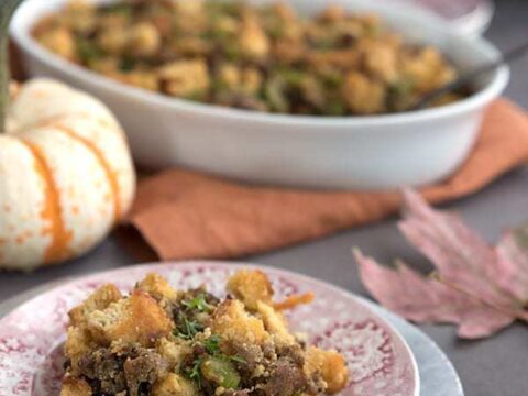 "This Keto Sausage and Bread Stuffing is going to be the star of your Thanksgiving table! Made with low carb cheesy skillet bread and plenty of sausage, it’s full of traditional stuffing flavor without all the carbs."