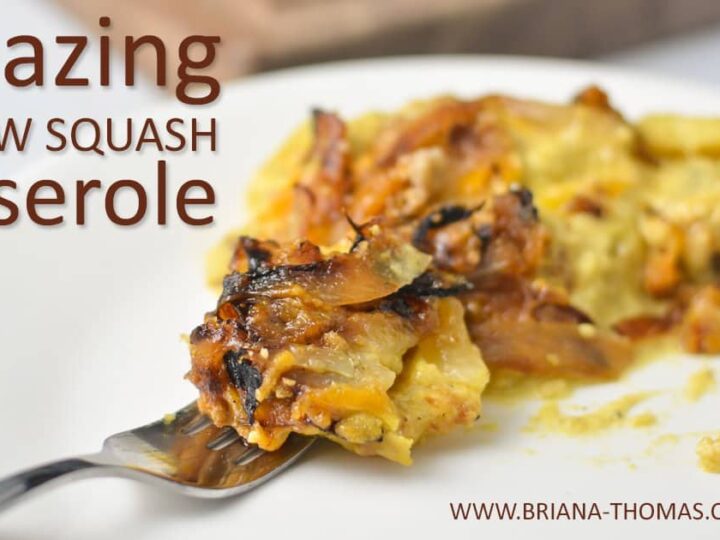 "This Amazing Yellow Squash Casserole is a healthy remake of an old family Thanksgiving side dish favorite! Ryan and I both loved it just as much as or better than the original. The cracker/fried onion/cheese topping is the "icing on the cake."
