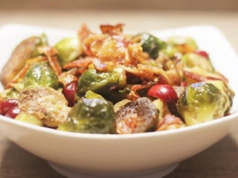 "Fresh Brussel Sprouts sauteed in bacon drippings and studded with a sweet tartness of fresh cranberries. A great low carb side for your holiday table."
