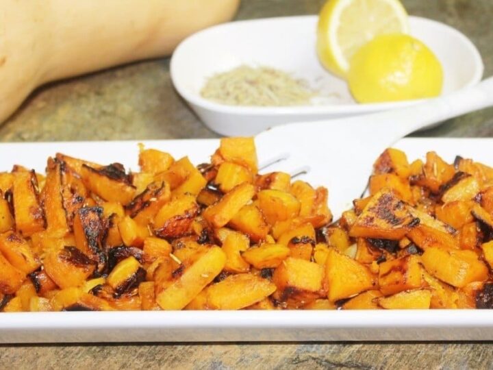 "A flavorful roasted butternut squash that makes an amazing side dish to any protein."
