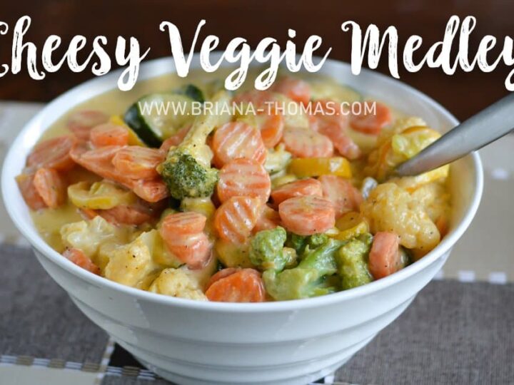 "This Cheesy Veggie Medley makes the perfect company or potluck side dish! I was going for a healthier, grown-up recreation of the Velveeta-coated California blend veggies that I remember from church functions in my childhood. This THM S, low-carb side dish makes a large batch and is a little heavier on the calories than I like to cook on a regular basis; but it makes a great side dish if you’re having guests over, and leftovers reheat well."