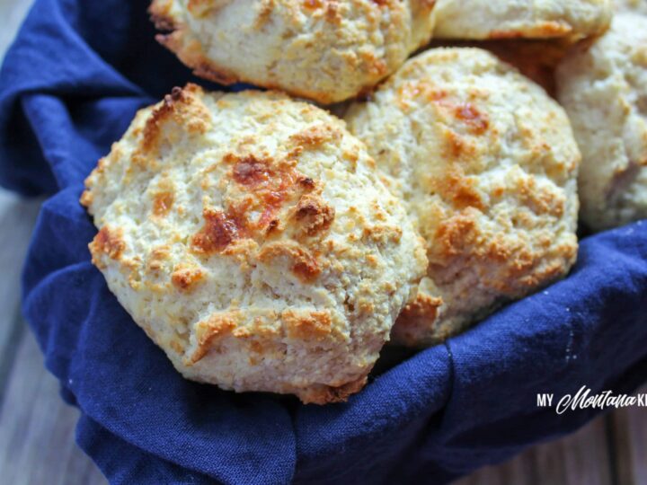 "Easy to make, with only a handful of ingredients, these low carb biscuits are sure to become a favorite! They are easy to whip together as a side for supper or as a main part of your breakfast!"
