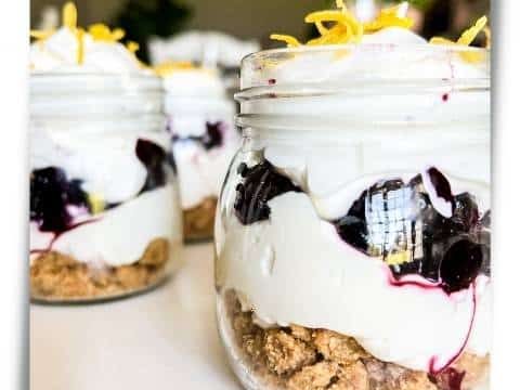 These keto Blueberry Lemon Delight Parfaits are a twist on the classic Blueberry Lush recipe. Make the recipe in a casserole dish or disposable cups to bring it to a potluck.