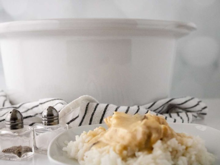 This creamy chicken dish is so easy to make! The rich creamy gravy and tender chicken are great over rice or get extra Southern and put yours on a biscuit!