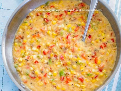 This vegan creamed corn is made with fresh corn, bell peppers, and coconut milk for the perfect creamy texture.
